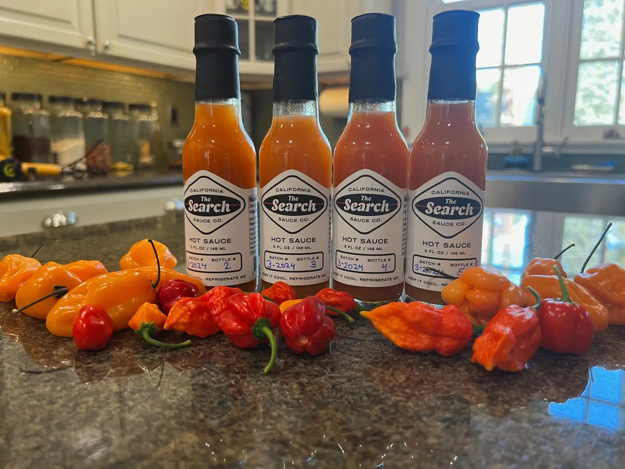 The Search Sauce is just that. We're searching for that perfect moment, in a bottle. Peppers are grown in our garden in the Willow Glen neighborhood in San Jose, CA and produced in ultra small batches.